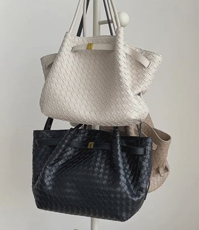 上質な牛革を贅沢に編み込んだ、存在感のある大人のトートバッグ。